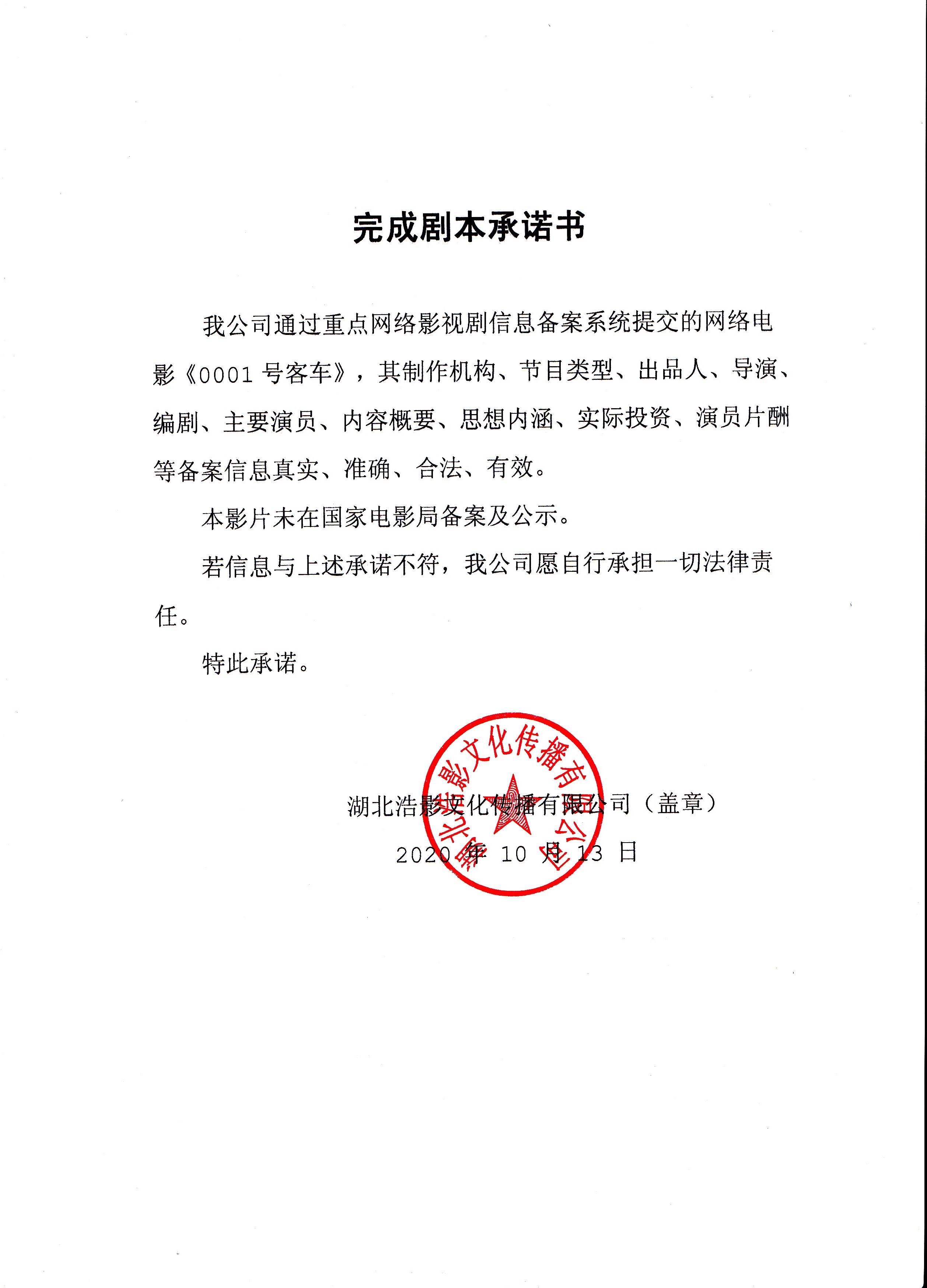 《0001號客車(chē)》,原名《女司機被強奸之后》,是由本公司專(zhuān)職編劇張明杰先生創(chuàng )作,并取得國家版權局備案證書(shū)。
